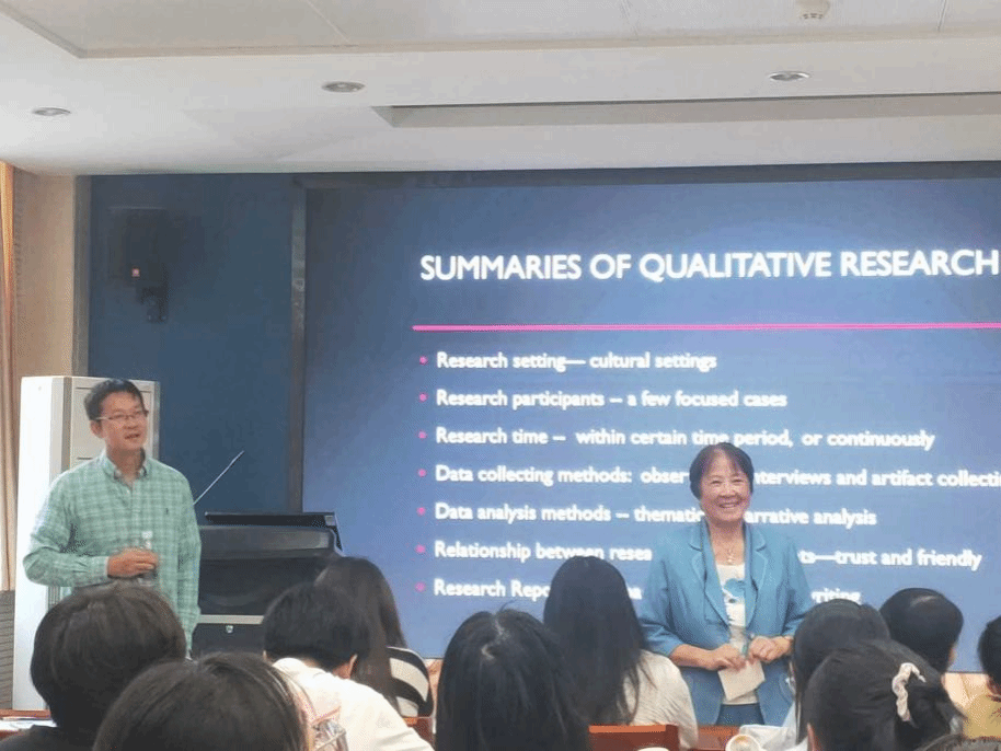 在交流期间,两位专家围绕教育心理学、语言与读写能力、跨文化教学及研究方法等主题,为师生带来了多场高水平学术讲座及研讨会。傅丹灵博士开设了“心理学对教学的影响”“质性研究方法”“穿梭语言(Translanguaging)与双语思维”“穿梭语言与学术写作”“质性研究经典案例”等讲座,深入探讨心理学理论在教学实践中的应用,以及双语教育与学术写作的关系。周小迪博士则主讲了“教育理论”“西方心理学流派介绍”“混合研究方法(定量+质性)”等主题,系统梳理西方心理学主要学派的发展脉络,并以跨文化视角阐释心理教育研究的综合方法。
