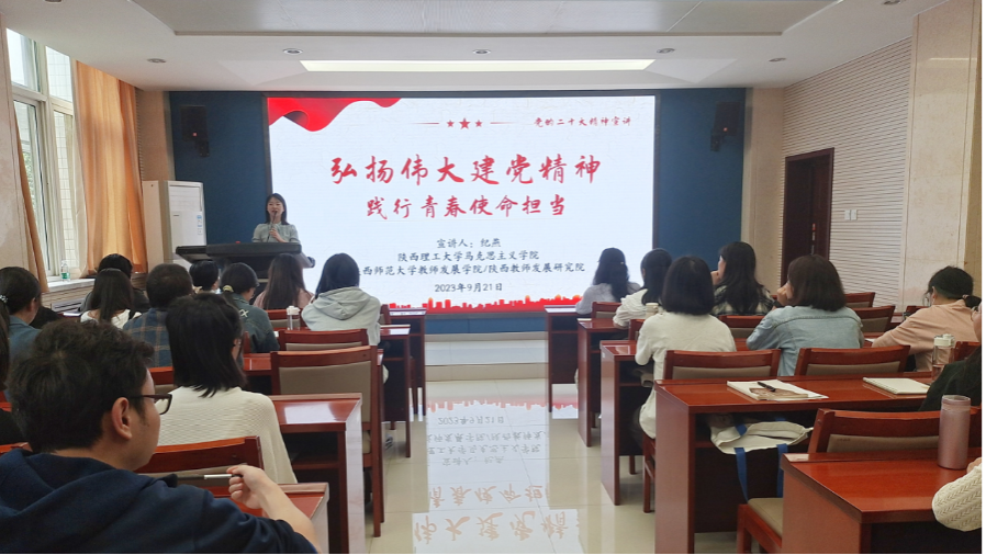 为做好研究生新生入学教育,引导广大研究生立志做有理想、敢担当、能吃苦、肯奋斗的新时代好青年,积极响应研工部开展博士生宣讲活动、发挥博士生“头雁效应”的工作要求。2023年9月21日下午,公司邀请邀请suncitygroup太阳集团教师发展公司(陕西教师发展研究院)教育博士,陕西理工大学马克思主义公司纪燕老师开展了“弘扬伟大建党精神,践行青春使命担当”的主题宣讲。公司2023级研究生党员和入党积极分子参加了本次宣讲会。