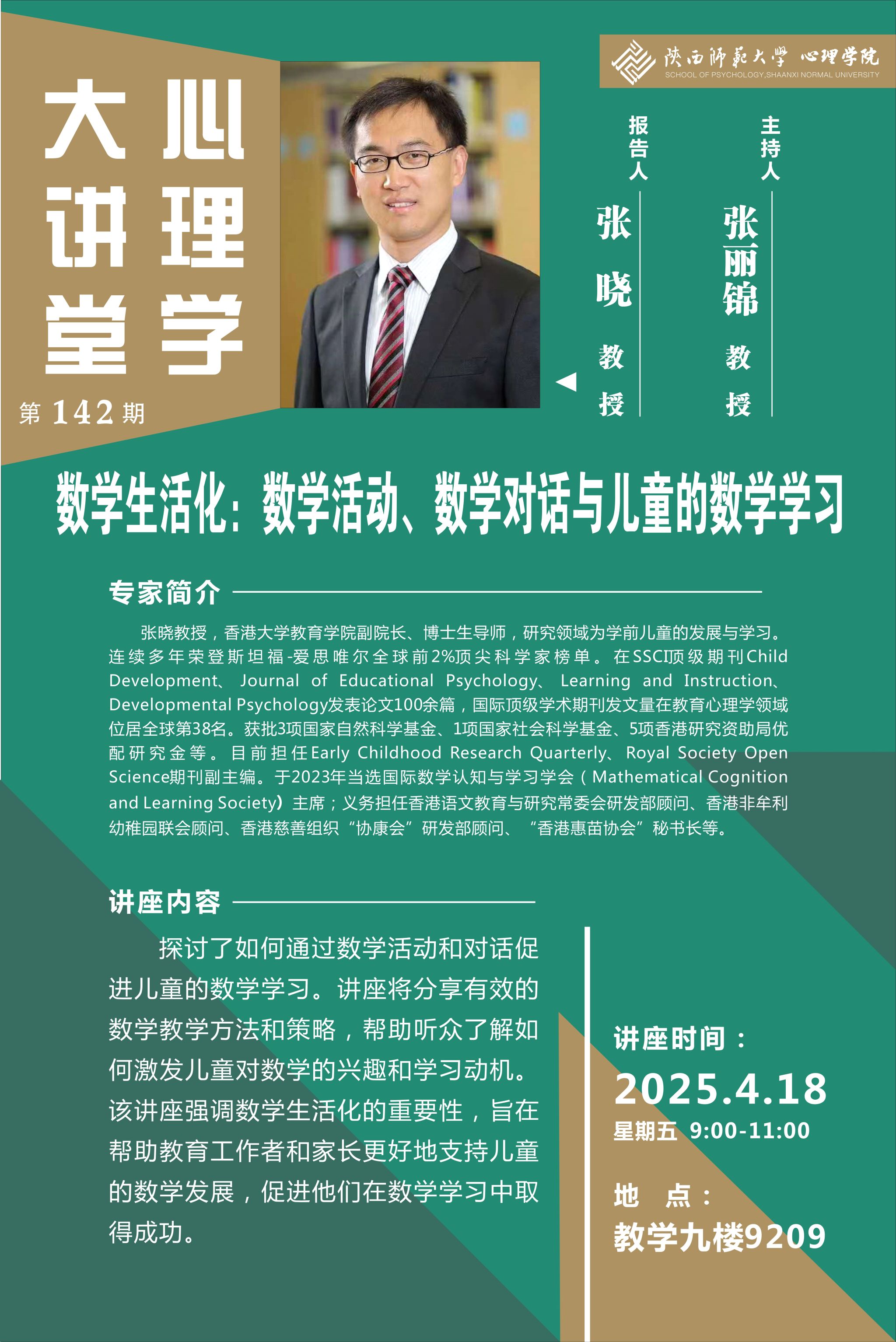 报告题目:数员工活化:数学活动、数学对话与儿童的数学学习