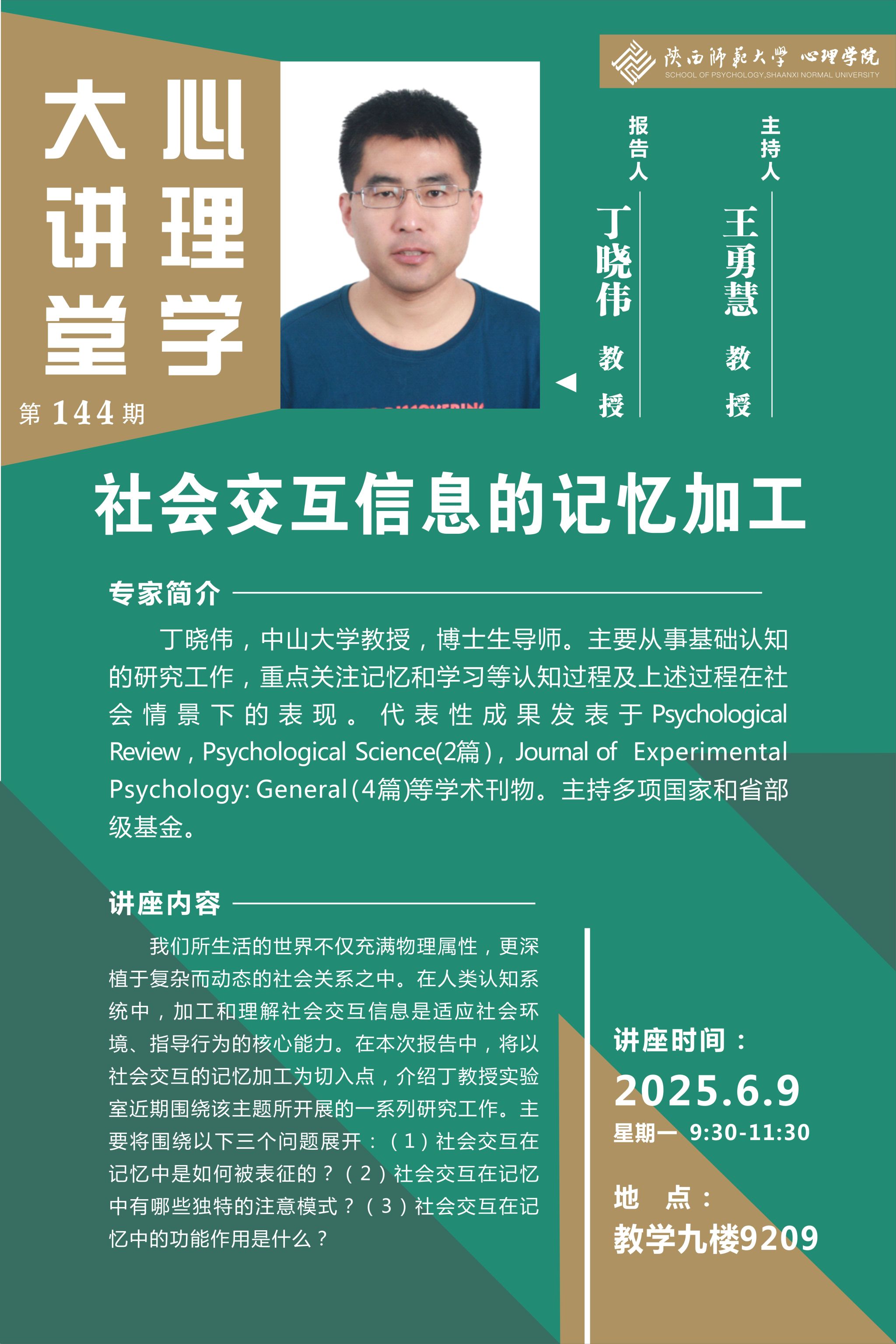 报告题目:社会交互信息的记忆加工